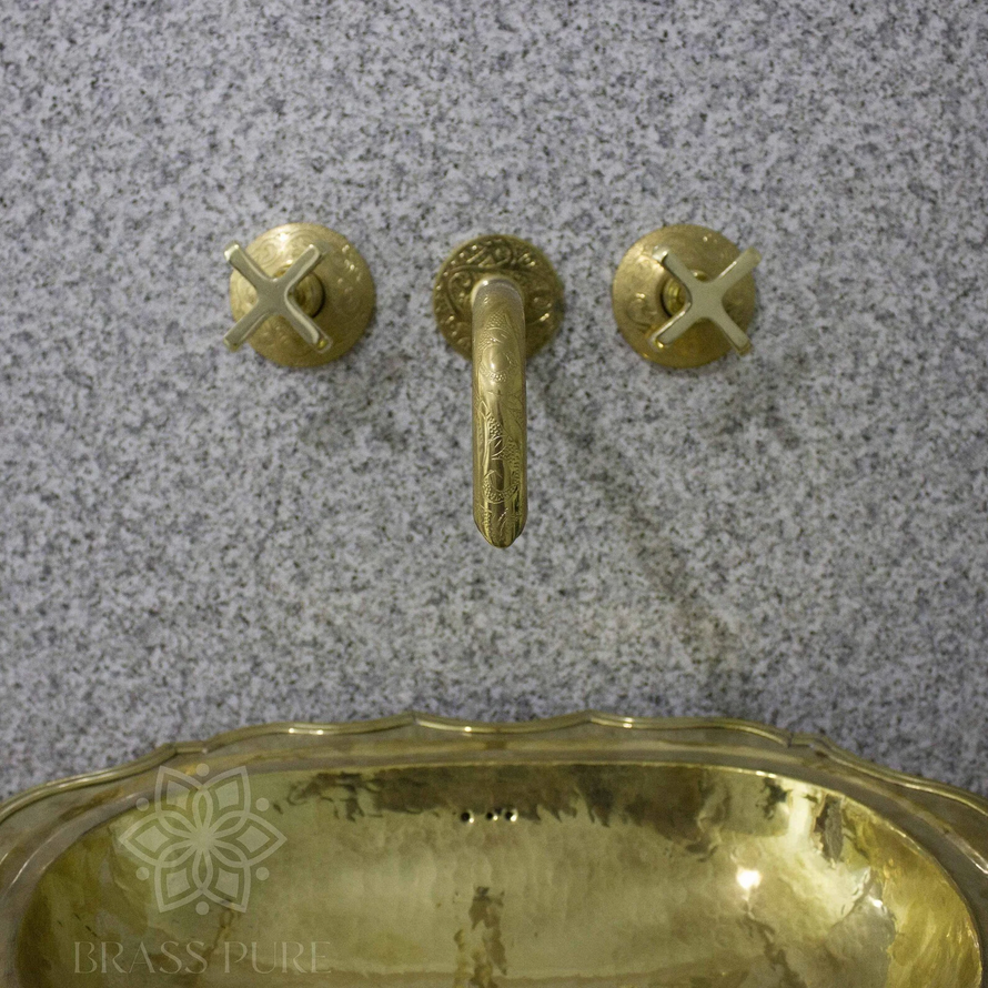 Engraved Wall Mounted Faucet For Bathroom or Kitchen, made with solid high quality brass. 8 inches standard faucet Valve.