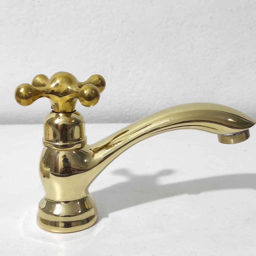 Unlacquered Brass Deck Mounted Faucet Wheel Handle