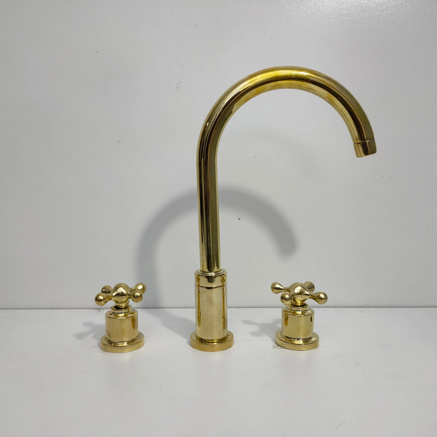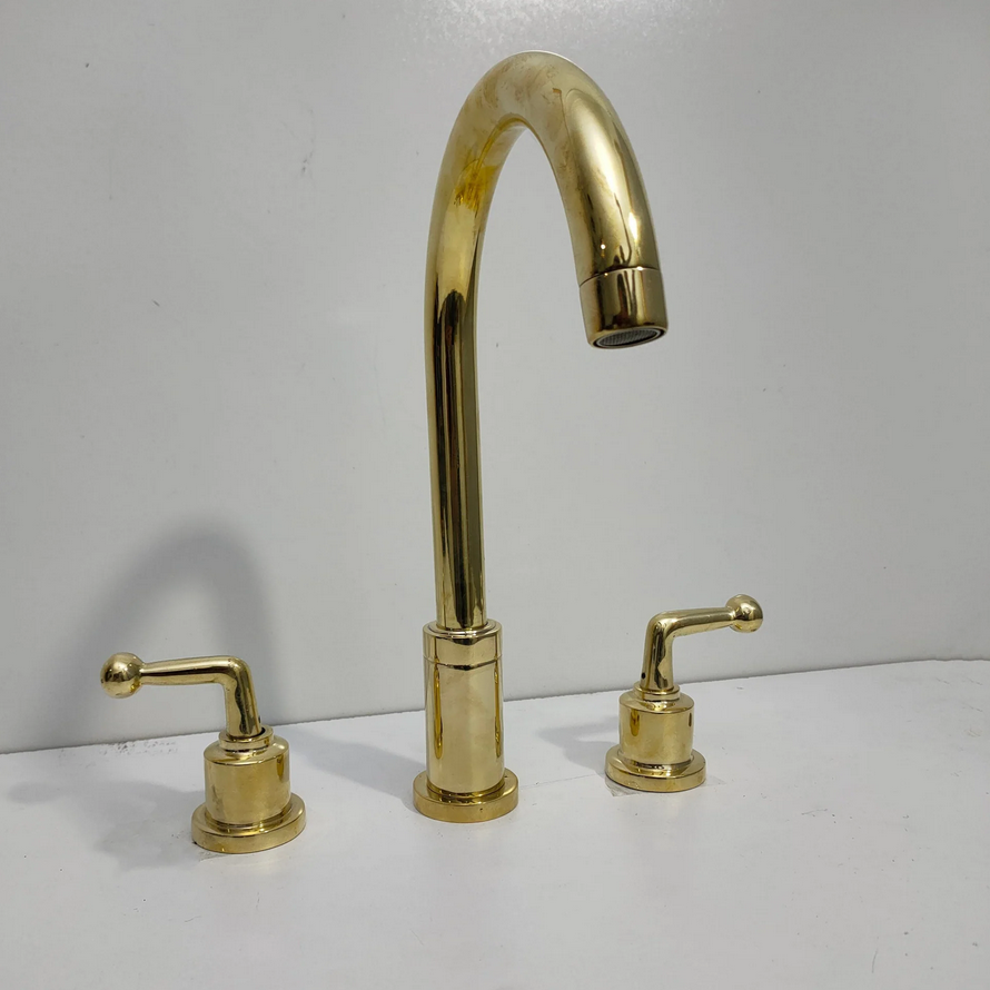 This Solid Brass Three Hole Gooseneck Faucet was made of 100% Solid Brass