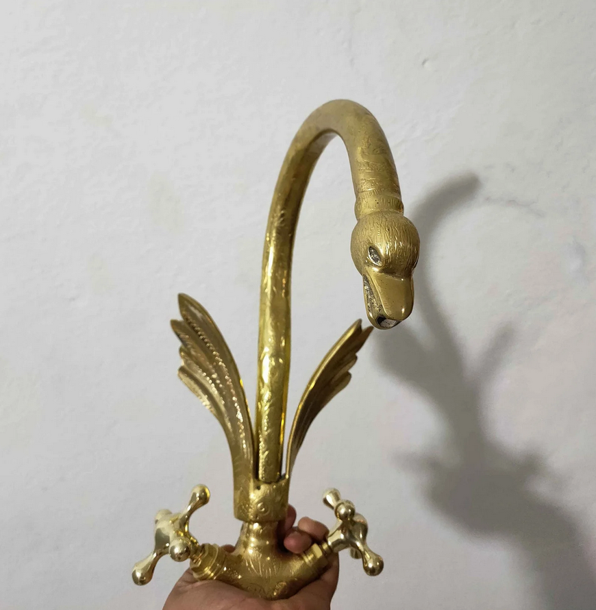 Our Unlacquered Brass Bathroom Faucet With Swan Neck Faucet. Handcrafted with natural brass.