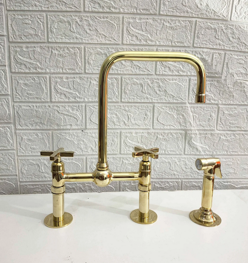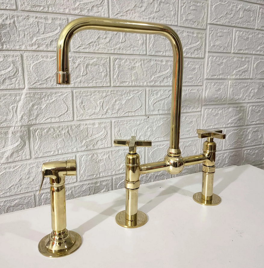 Infuse timeless charm into your kitchen with our Brass Bridge Kitchen Faucet. The square spout design adds an incredible touch of elegance to your space.