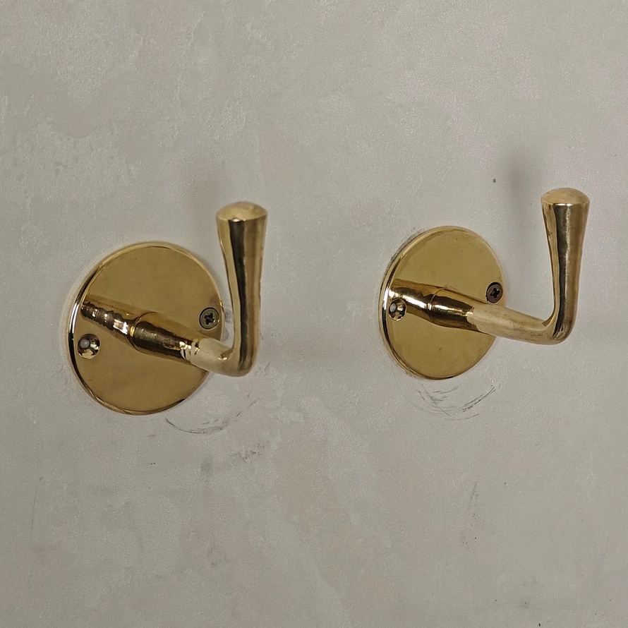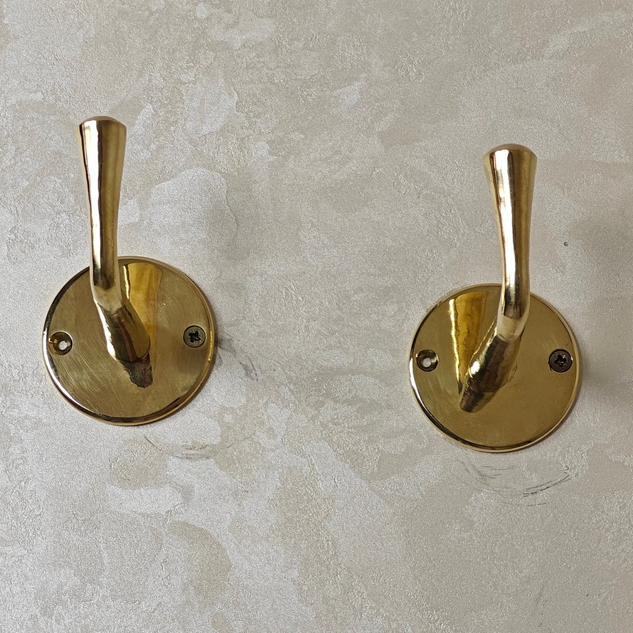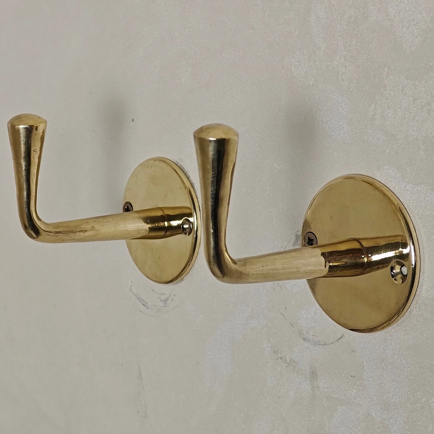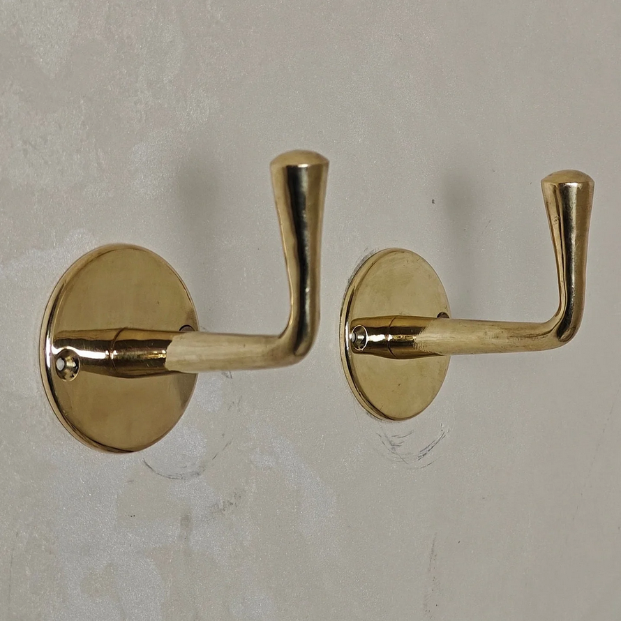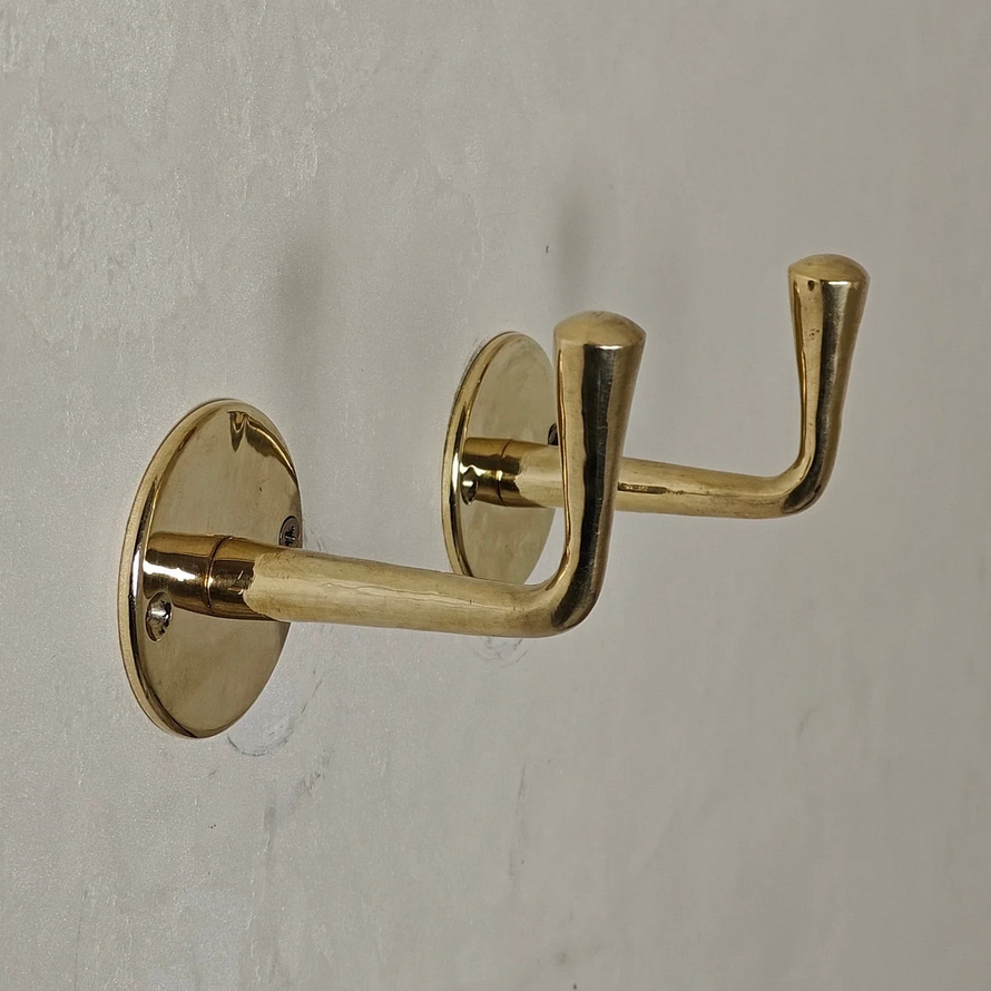 Unlacquered brass coat racks. Solid brass construction. A beautiful Brass Coat hooks that will last a lifetime. Please note, unlacquered brass is a living finish that will patina and change with time