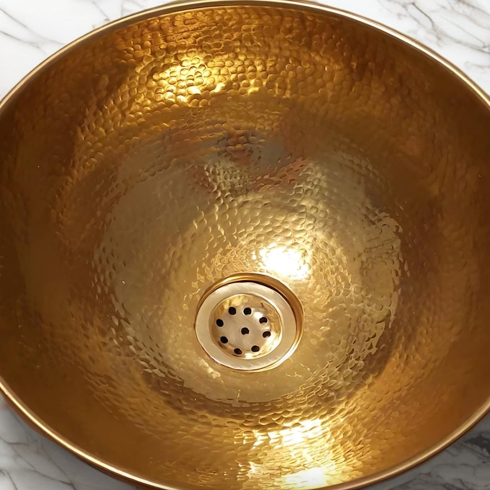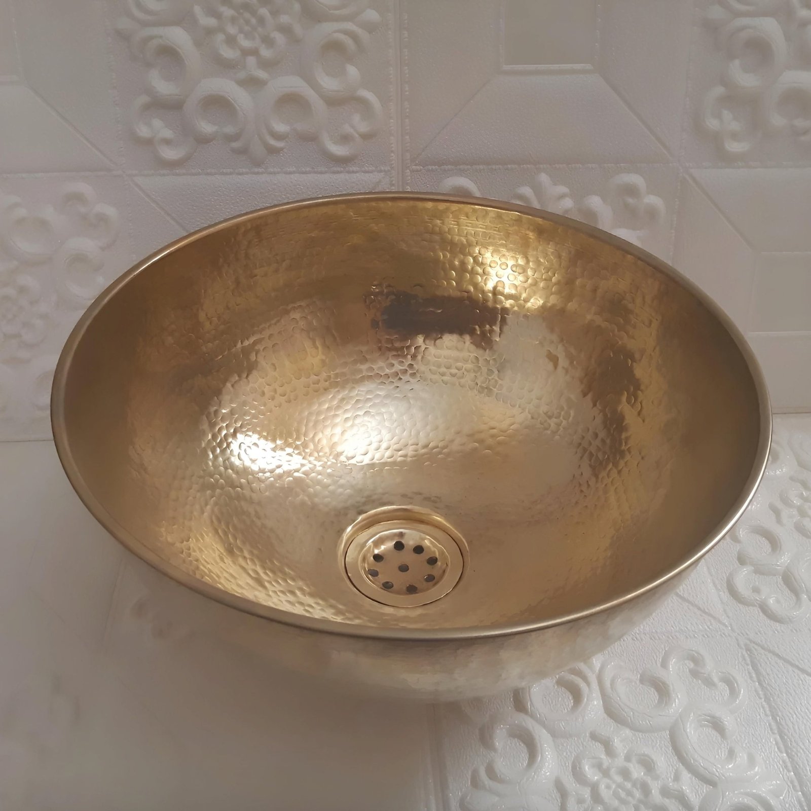 Unlacquered Brass Round Vessel Sink, Hammered Sink Vessel.
