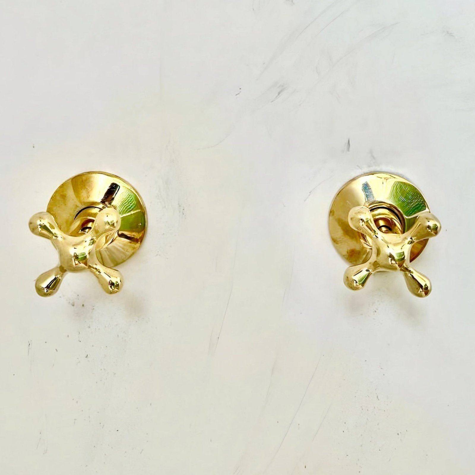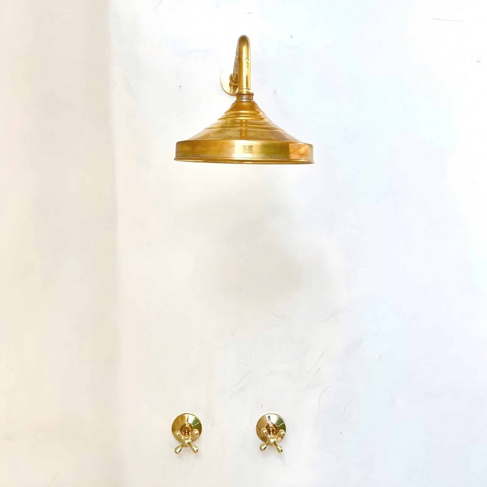 Boasting elegant accents, this Classic Round Rain Shower Head with Cross Handles and Extension Arm is ideal for spaces seeking a timeless touch. Expertly handcrafted flares and a selection of top-quality finishes add to its refined appearance.